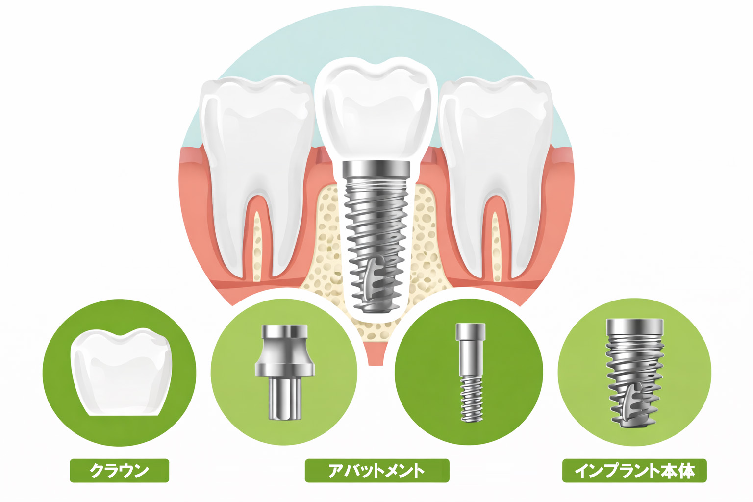 大きな違いは”あごの骨に人工歯根を埋めるかどうか”です。