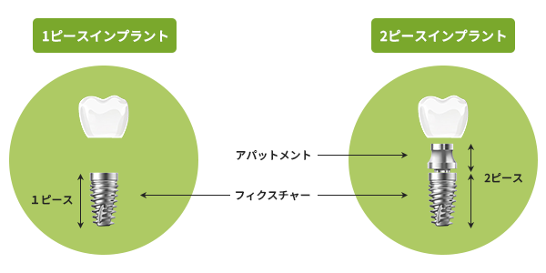 | 概要 | インプラント体とアバットメントが一体 | インプラント体とアバットメントが分離 |