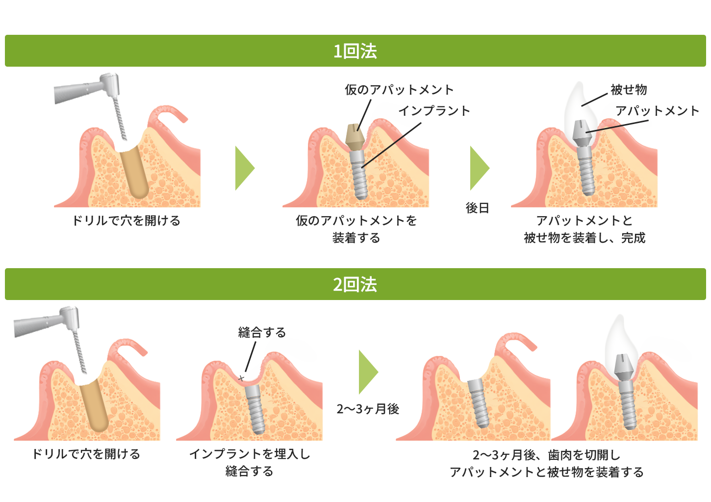 当院のインプラント治療は第一治療と第二治療に分かれる2回式です。