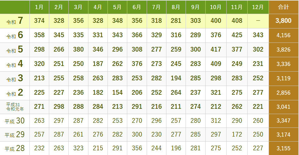 昨年(令和6年)の合計埋入数は「4,156本」でした。